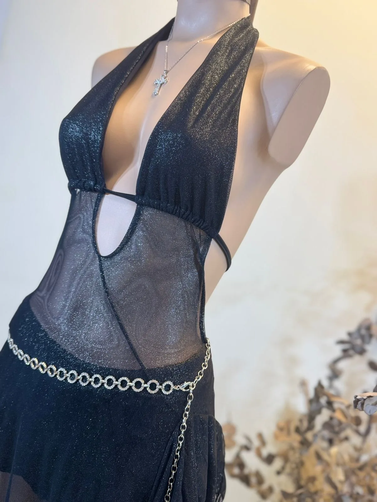 Maxivestido marilyn super tajo VOLADO MicroTUL BRILLITO cantidad